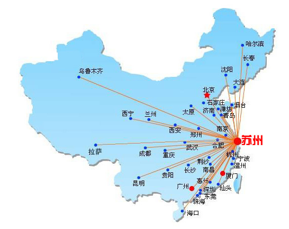边远地区运输服务网络:西藏拉萨、青海西宁、贵州、包头、海南海口、三亚、呼和浩特、新疆乌鲁木
